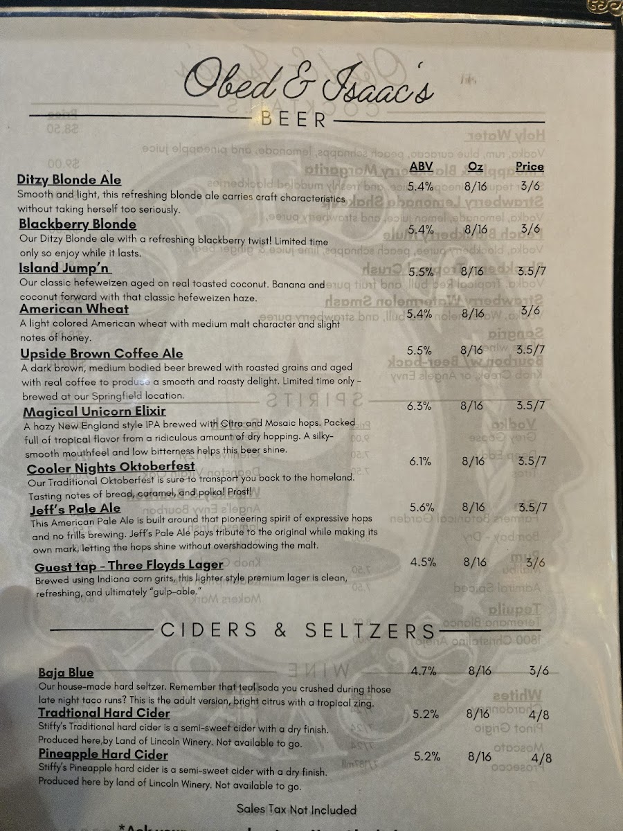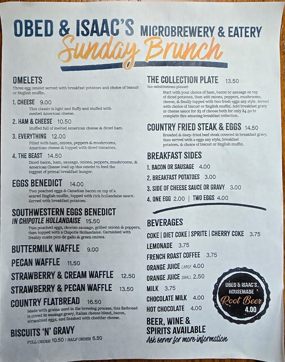Obed & Isaac's Microbrewery and Eatery Menu